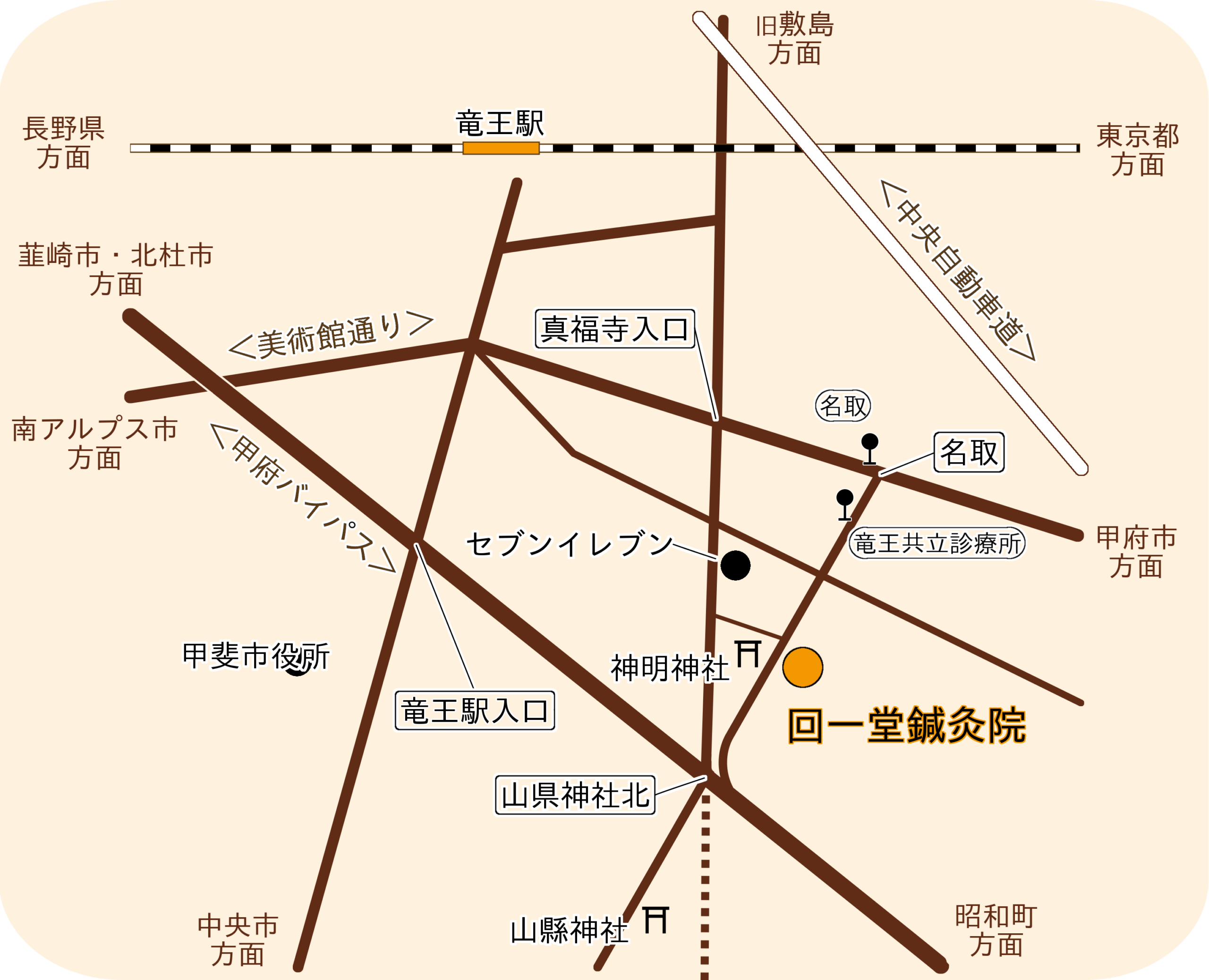 甲斐市民バス「竜王共立診療所」より徒歩約3分